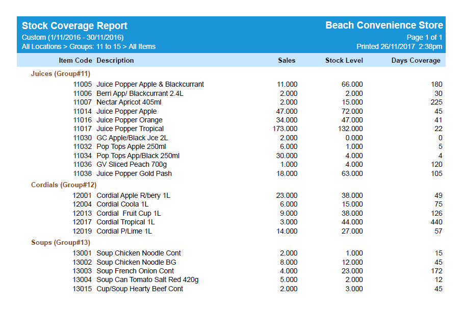 - Powerful stock reporting – including Movement, Coverage and Summary reports